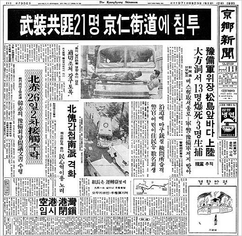 섬을 빠져나온 23명의 공작원들은 12시 20분경 인천 옥련동 독부리[옹암]해안에 상륙한 뒤 인천시내버스를 탈취하여 경인국도를 타고 부평,소사,영등포를 거쳐 청와대로 향했다