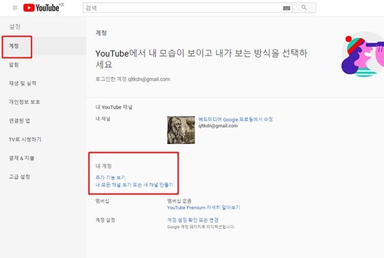 계정 > 내 계정에서 내 모든 채널 보기 또는 채널 만들기를 누른다
